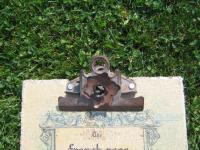 Desky potažené hrubou látkou s motivem lady a s kovovým skřipcem na upevnění papíru.