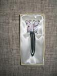 Celokovová, stříbrná záložka do knihy s fialovým motýlem.